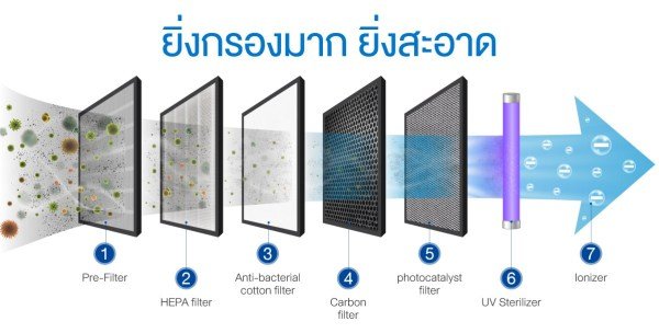 ที่มีประสิทธิภาพในการฟอกอากาศ สามารถฟอกฝุ่นละอองขนาดเล็ก สูงสุดถึง 0.1 ไมครอน เกสรดอกไม้ เชื้อแบคทีเรีย และสารอันตรายอื่นๆในอากาศได้ถึง 99.97%