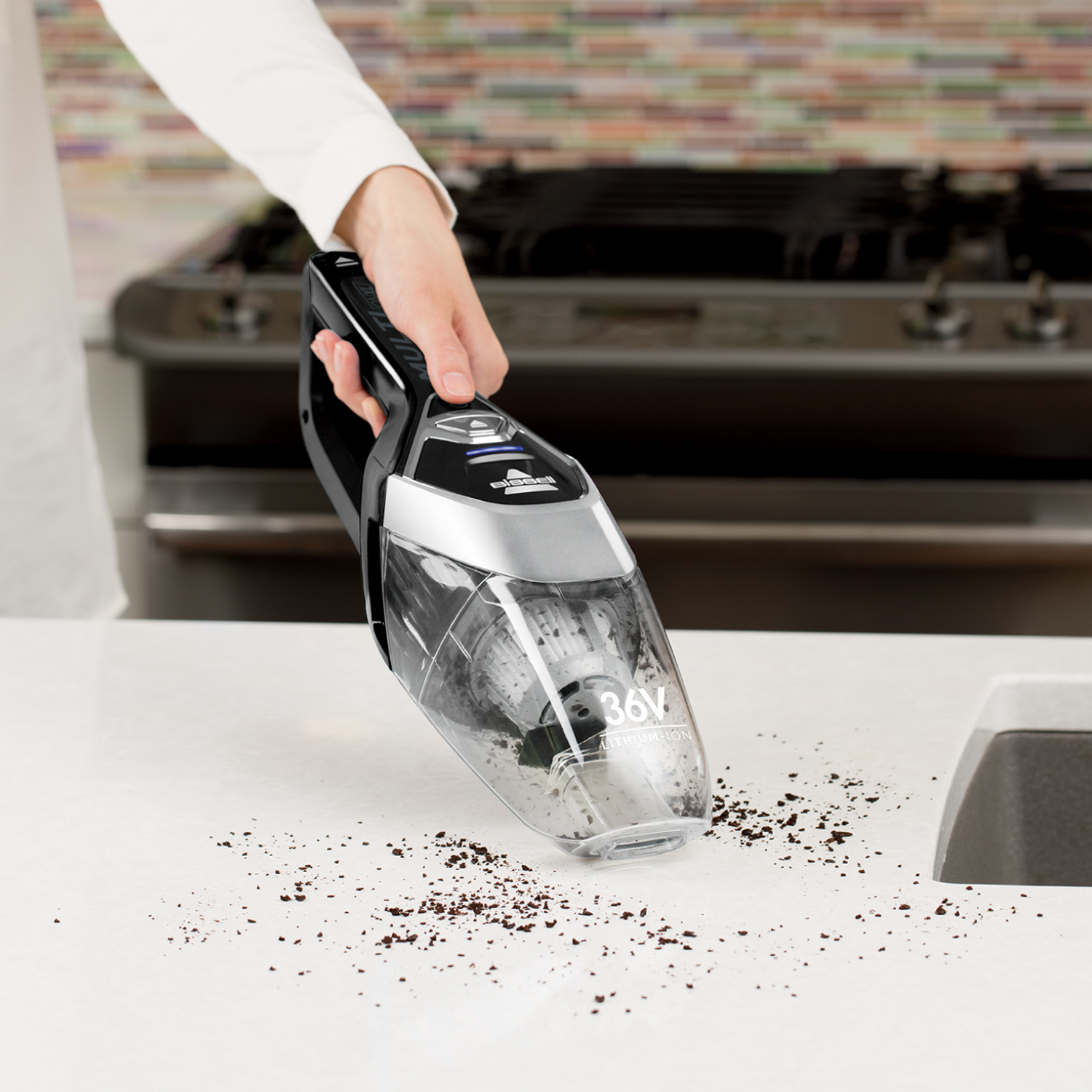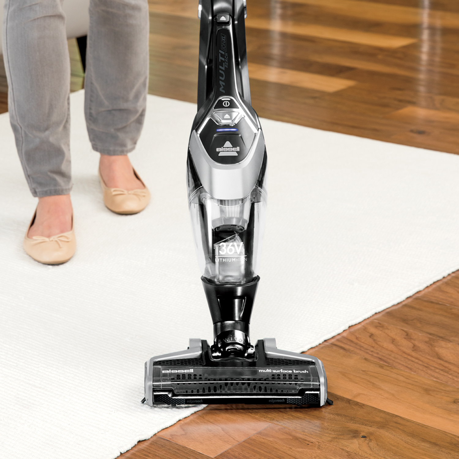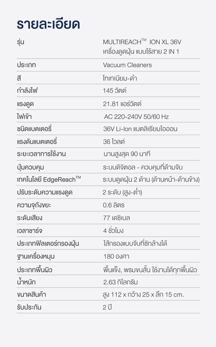 สามารถกดปุ่มที่ด้ามจับสําหรับพับเครื่องเพื่อเข้าใต้โต๊ะ เฟอร์นิเจอร์ เข้าได้ทุกซอกมุม