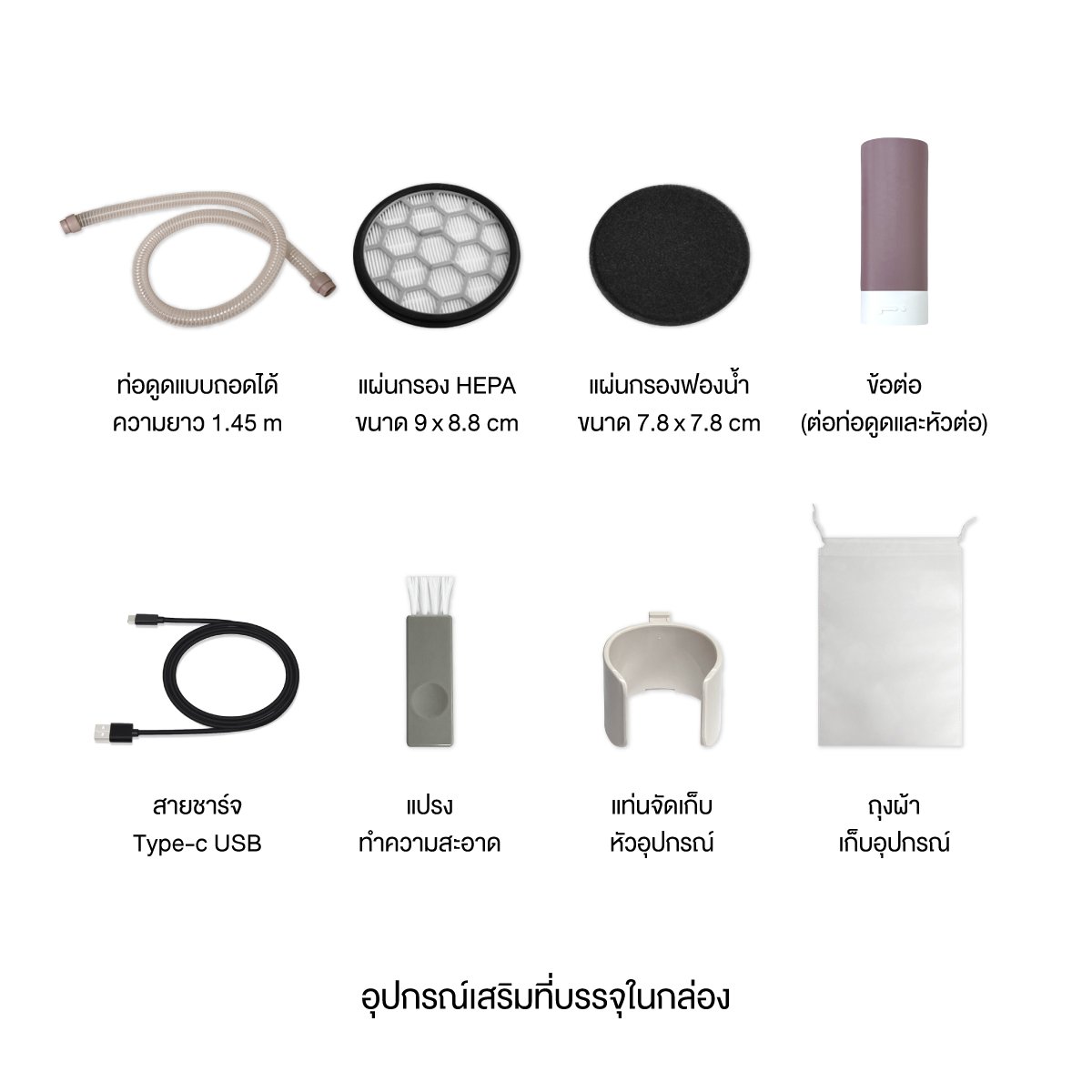 - การดูด: แบบแห้ง ดูดขนสัตว์–ฝุ่น–เส้นผม (ใช้แบบแห้งเท่านั้น)
