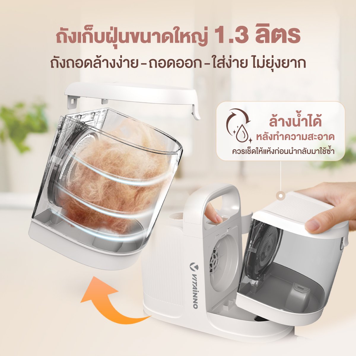 - ถังเก็บฝุ่น 1.3 ลิตร เททิ้งทำความสะอาด ถอดล้างง่าย