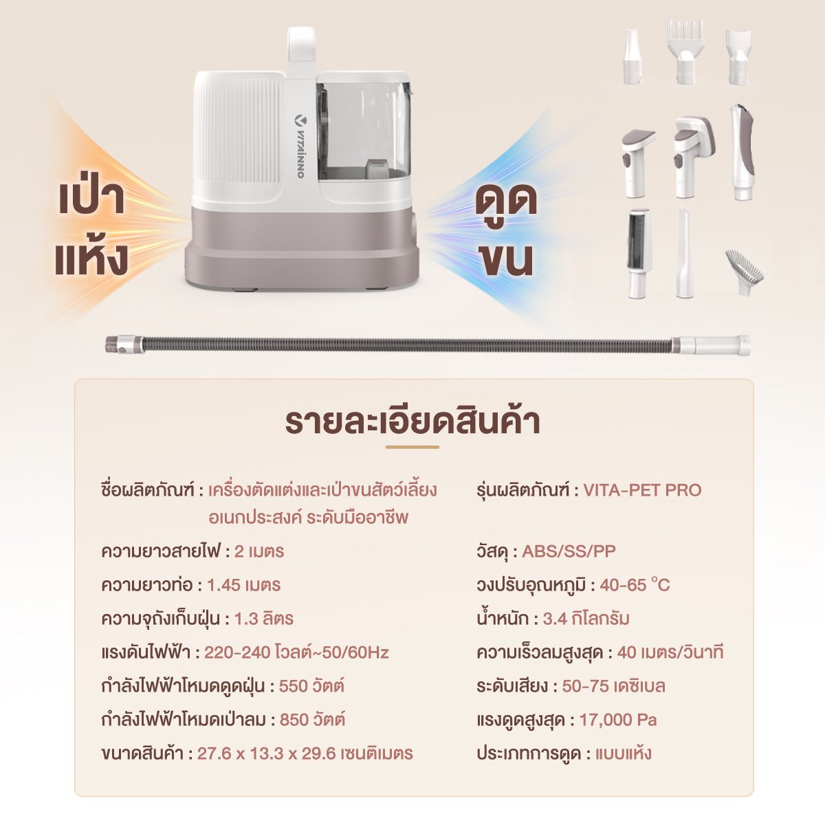 อ่านข้อมูลเพิ่มเติ่ม VITA-PET PRO เครื่องตัดแต่งและเป่าขนสัตว์เอนกประสงค์ คลิกเลย!