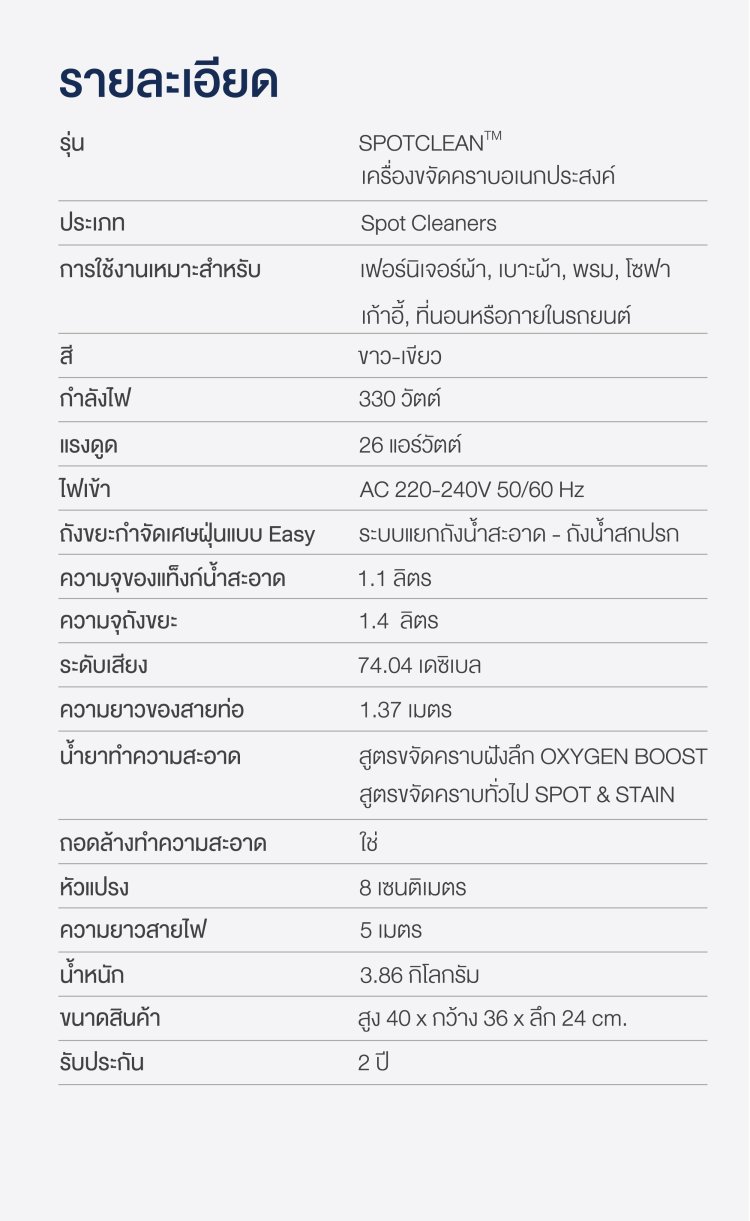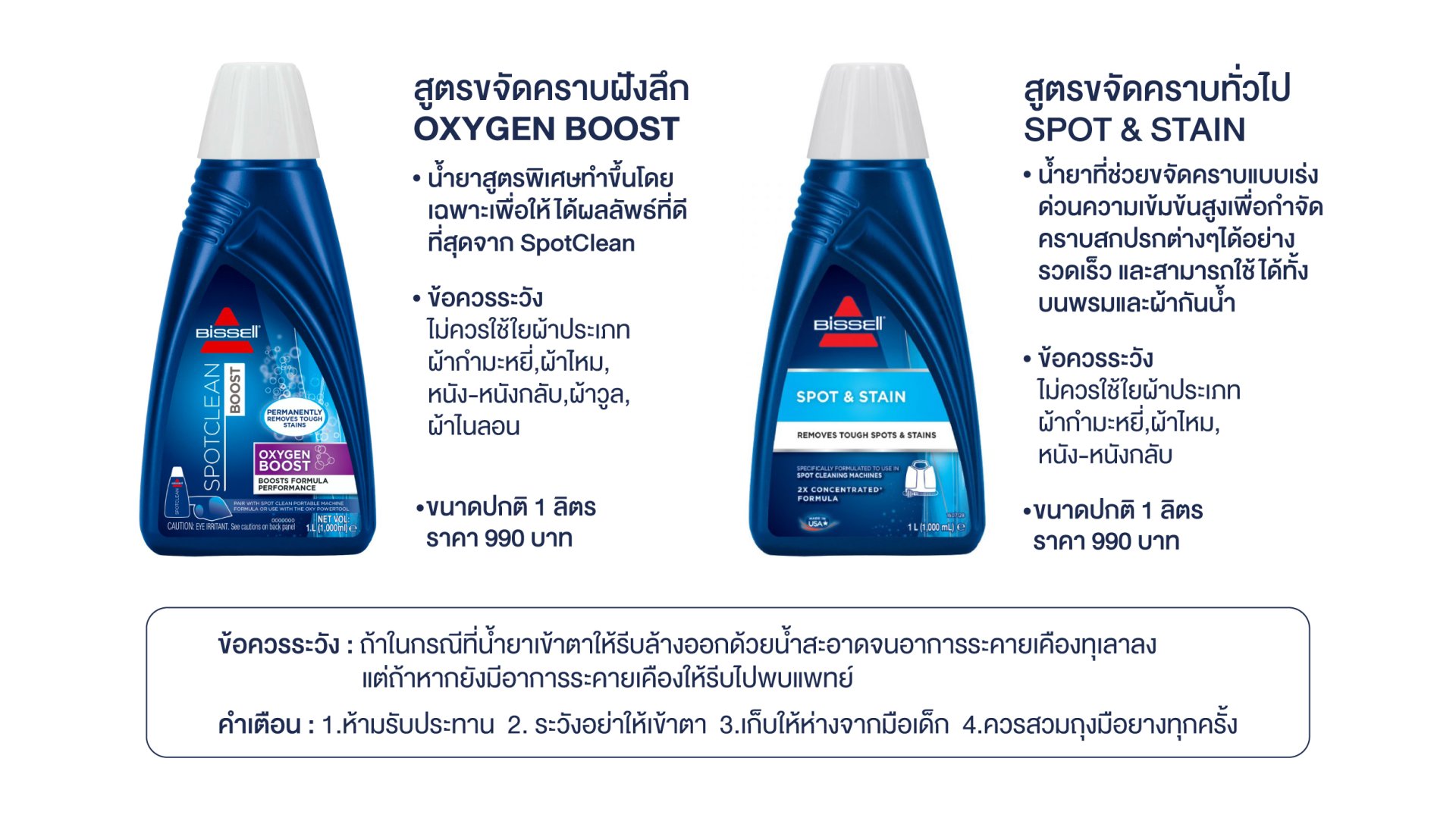 BISSELL® SPOTCLEAN มาพร้อมกับเทคโนโลยี Heatwave และแปรงอเนกประสงค์ที่ให้ช่วยขจัดคราบเปื้อนออกได้อย่างง่ายดายพร้อมด้วยนํ้ายาสูตรพิเศษจาก BISSELL® ที่สามารถขจัดคราบแสนเก่า หรือคราบใหม่ได้อย่างมีประสิทธิภาพ