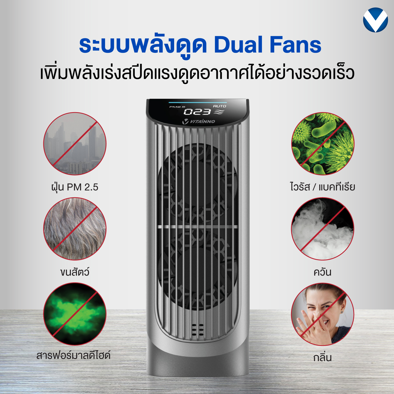 ระบบการทํางานออกแบบพิเศษและแตกต่างไม่เหมือนใคร ระบบพลังดูด Dual Fans ที่มีพัดลม 2 ตัวเพื่มพลังเร่งสปีดแรงดูดอากาศ ได้อย่างรวดเร็ว ประสิทธิภาพแผ่นกรองที่สามารถดักจับฝุ่นอนุภาคขนาดเล็ก แม้กระทั่ง PM2.5 ในห้องโดยสารรถยนต์ ได้อย่างหมดจด กรองละเอียดสูงสุด 0.1 ไมครอน กําจัดฝุ่นละออง ผงฝุนขนาดเล็ก แม้กระทั่งสารระเหย ควันไอเสีย แก๊สพิษ รวมถึงเชื้อโรคที่ปนเปื้อนมากับผงฝุ่นละออง