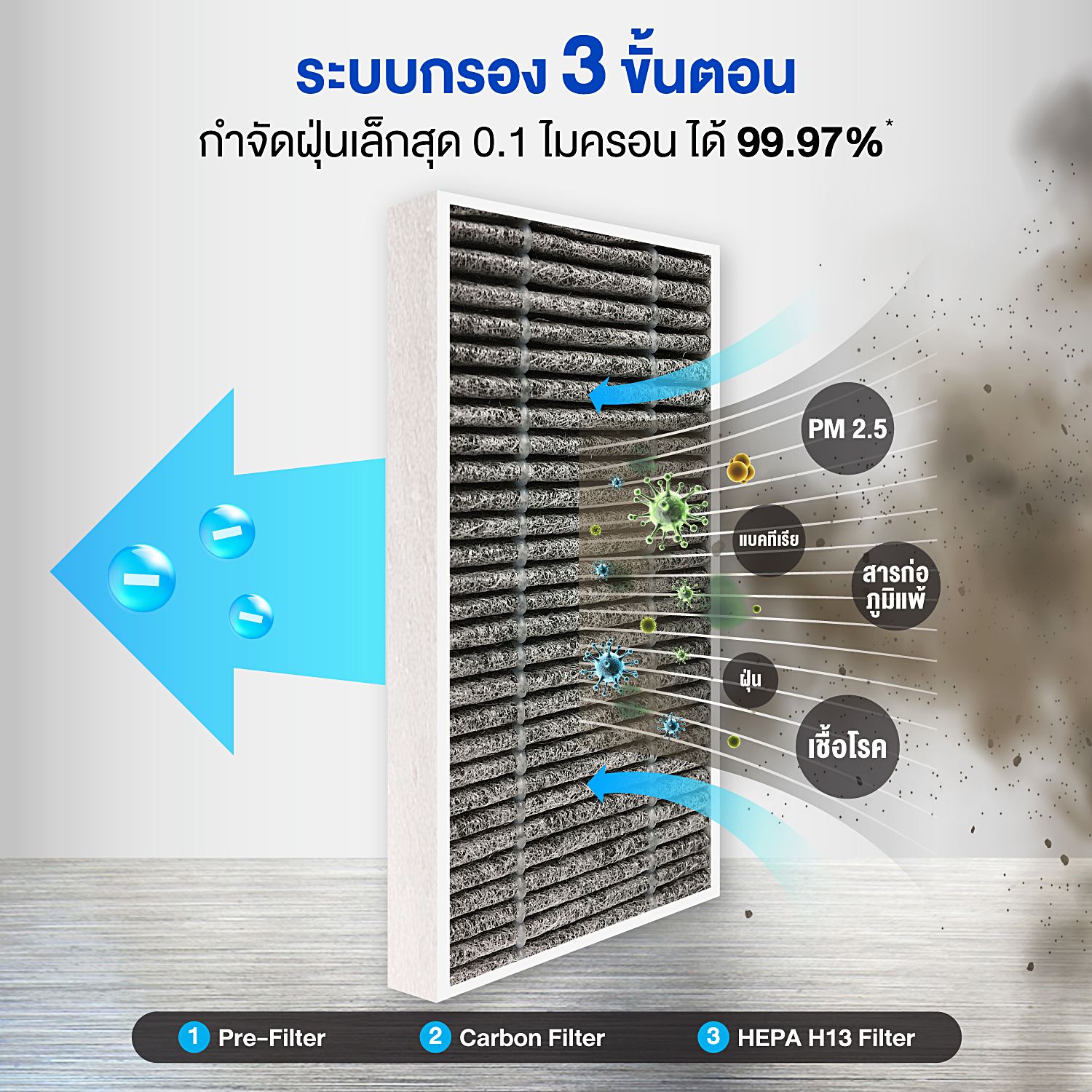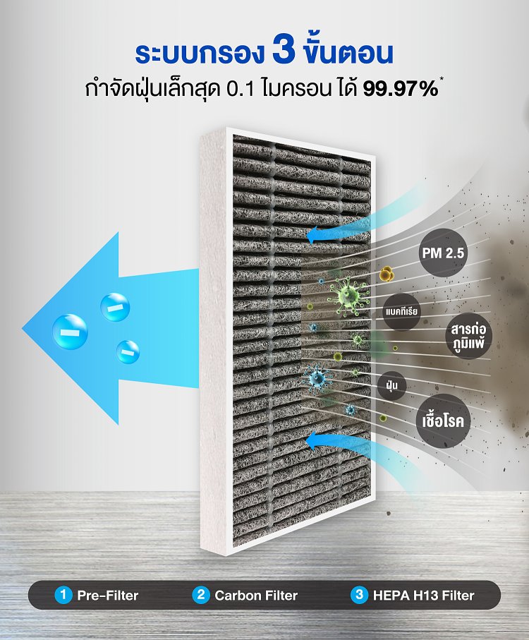 (Clean Air Delivery Rate-CADR) 13 ลบ.ม./ชั่วโมง