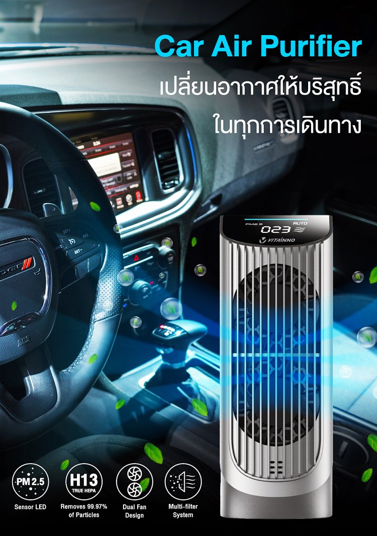 เครื่องฟอกอกาศในรถยนต์ที่มาพร้อมกับเทคโนโลยีที่ช่วยกรองฝุ่นละเอียด PM 2.5 ได้สูงถึง 0.1 ไมครอน ในอัตราการสร้างอากาศบริสุทธิ์